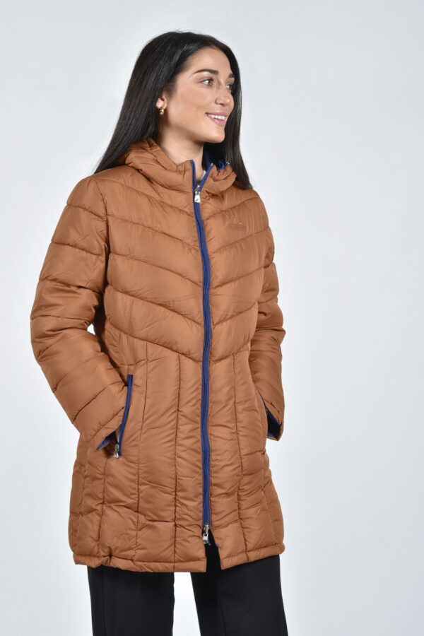 Μπουφάν μακρύ με κουκούλα μόνιμη ,με φερμουάρ που φοριέται και από τις δύο όψεις. Πολύ ζεστό και άνετο για καθημερινή χρήση.