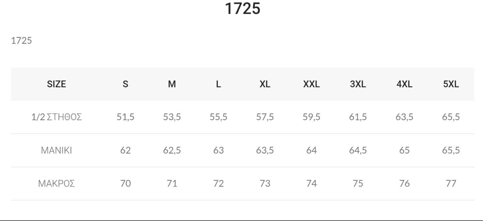 | Μέγεθος | L, XL, 2XL, 3XL, 4XL, 5XL, 6XL |