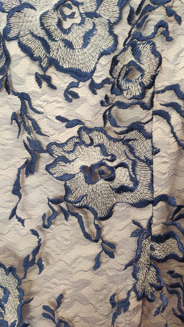Φόρεμα σε κλασσική pencil γραμμή με λαιμόκοψη και κοντό μανίκι. Σε υπέροχη μπλέ lourex δαντέλα και εσωτερικά σε σομόν χρώμα που θα φορεθεί σε ιδιαίτερες στιγμές.